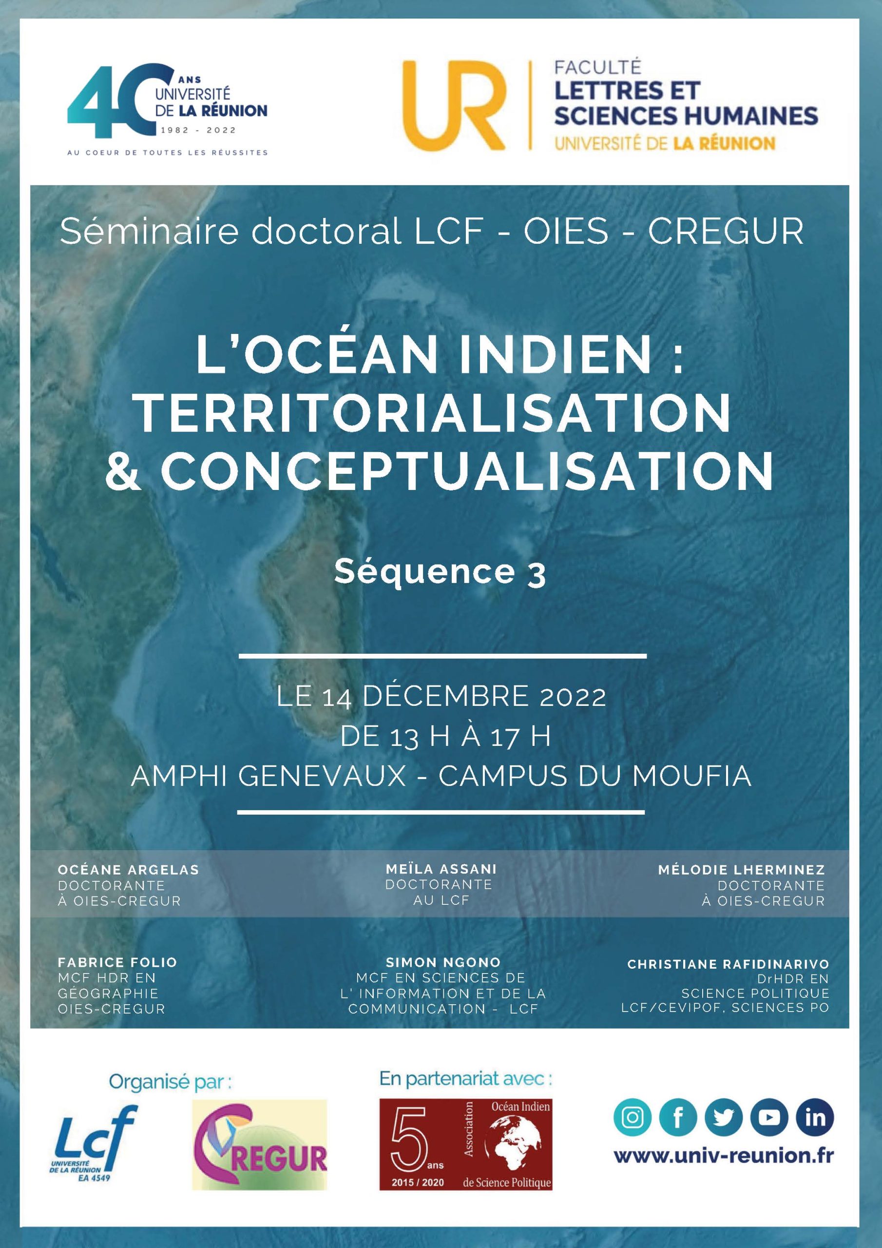 Participez au séminaire doctoral « océan Indien : territorialisation et conceptualisation – Séquence 3 » le 14 décembre en amphithéâtre Genevaux, Campus du Moufia de 13h00 à 17h00.