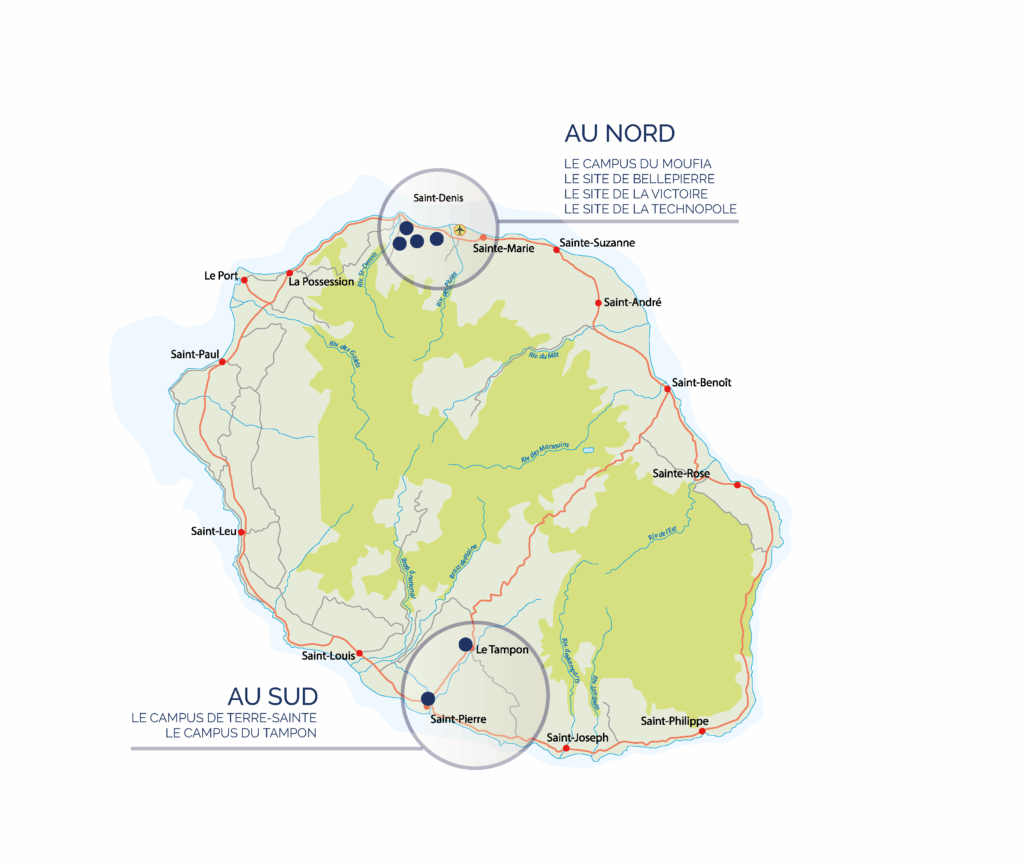 | Faculté de Santé | campus de Terre-Sainte | Sud : Ville de Saint-Pierre |